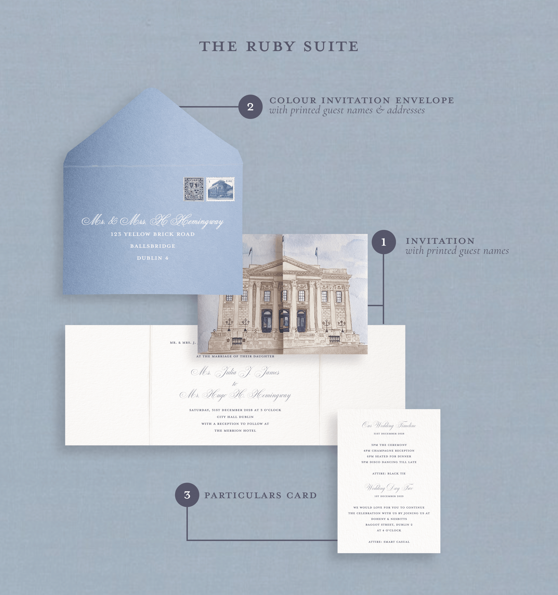 Each suite has been thoughtfully designed to offer different levels of personalisation, allowing you to curate an invitation experience that feels uniquely your own.